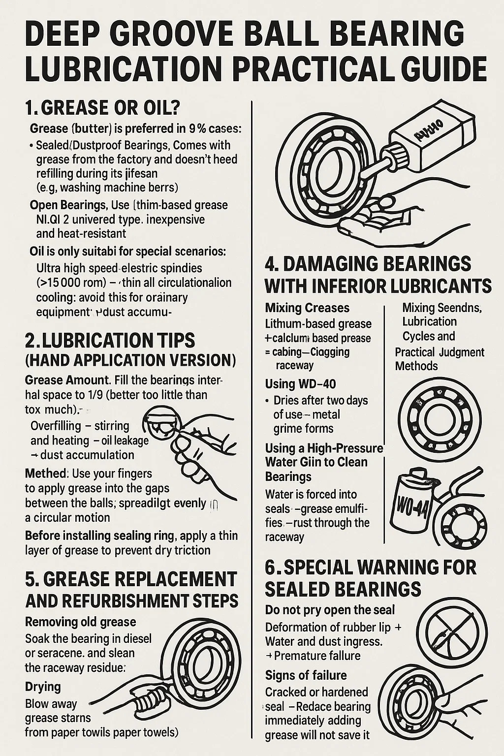 Kasta laakeri dieseliin tai kerosiiniin ja puhdista juoksuradan jäännökset hammasharjalla.